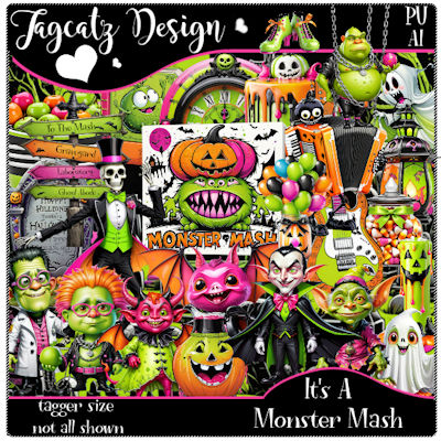 It's a Monster Mash - in the graveyard! Lots of Halloween monsters, music, graves and more. Created by me in AI. Tagger size. Not all shown.